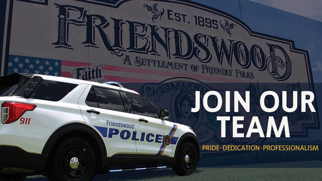The Friendswood Police Department is currently hiring certified Police Officers and non-certified Cadets.