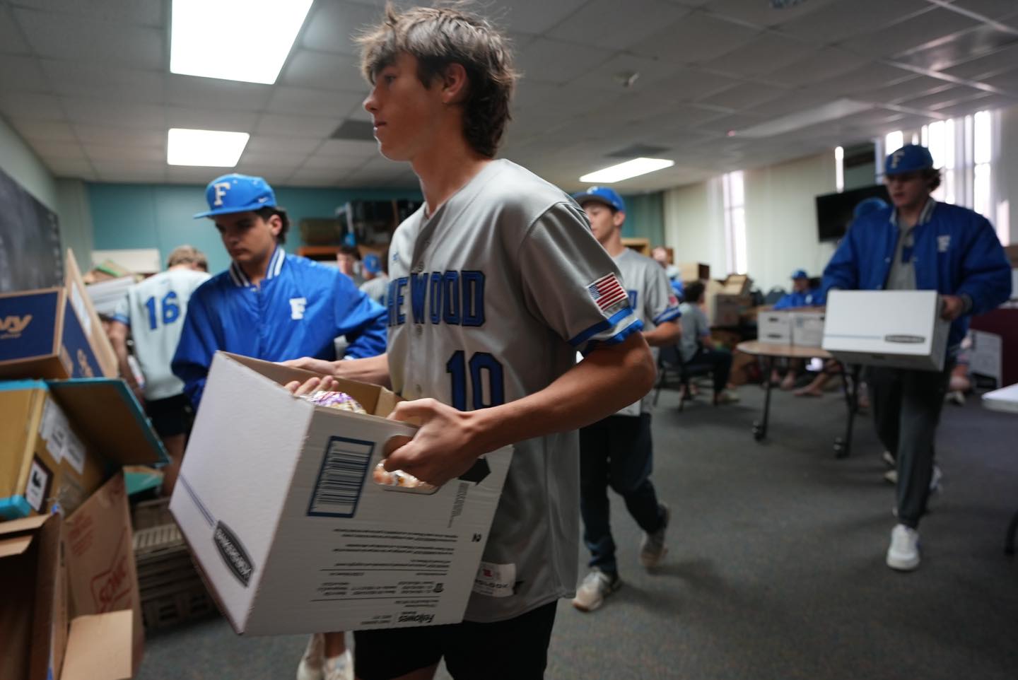 Today, the Friendswood Police Department Chaplains and Friendswood Mustang Baseball team enjoyed partnering to provide food to 100 local families for the Friendswood ISD Day of Service.